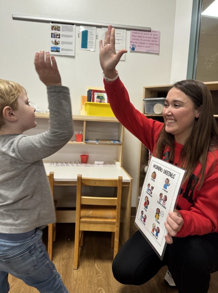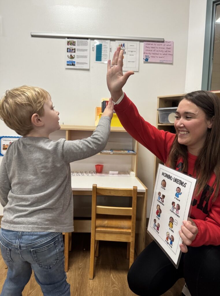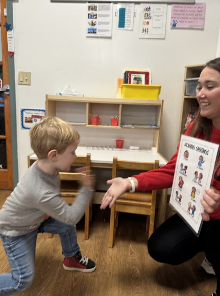 Greeting choices help children feel seen, respected, and safe while also encouraging independence and decision-making. These warm connections set the tone for a positive day and strengthen the sense of belonging in the classroom community.