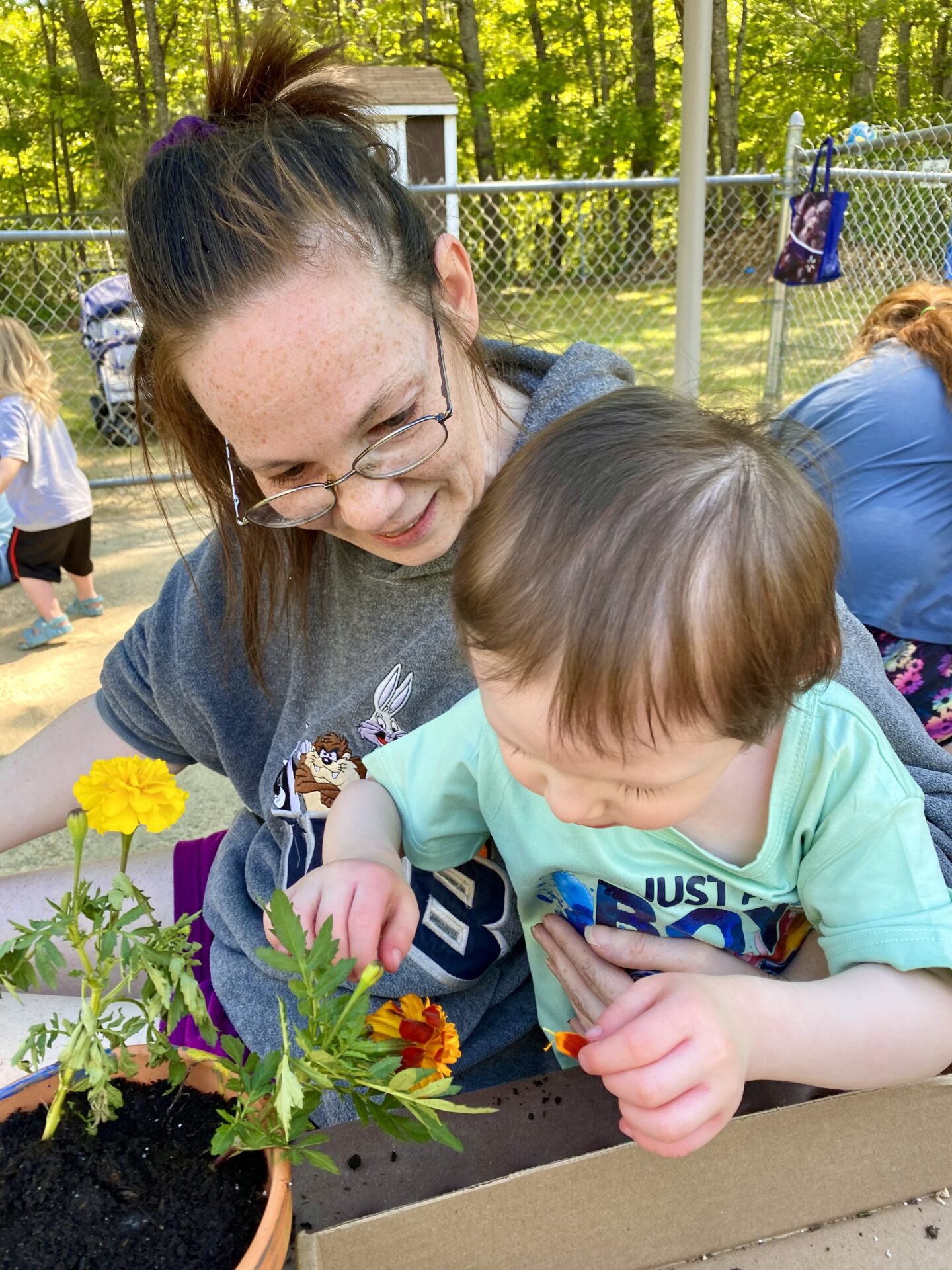 South Gardiner Early Head Start families rolled up their sleeves this week to paint clay pots and plant bright flowers together. It was a morning
